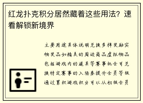 红龙扑克APP下载的产品涵盖了多种类型的游戏,包括角色扮演游戏(RPG)、战略游戏、模拟经营类游戏、以及手机游戏等多个领域。通过深入的市场调研和玩家需求分析,红龙扑克APP下载不断推陈出新,推出了一系列在市场上广受欢迎的作品。无论是在国内还是海外,红龙扑克APP下载的游戏产品都赢得了玩家的一致好评,成功吸引了庞大的用户群体。